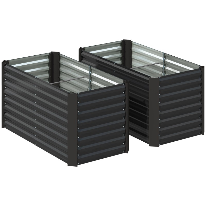 Viljelylaatikko syvä metallinen 120 x 60 x 60 cm 2 kpl tummanharmaa