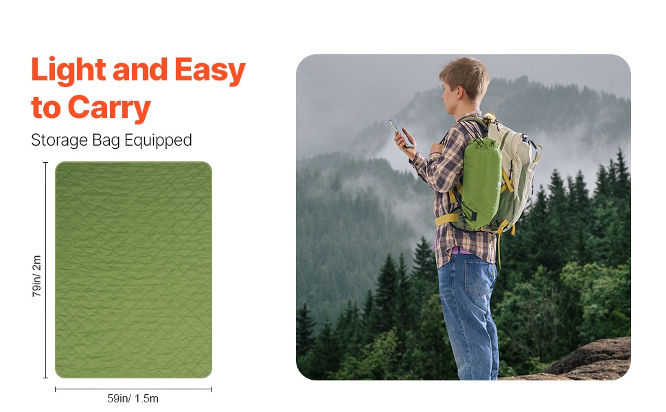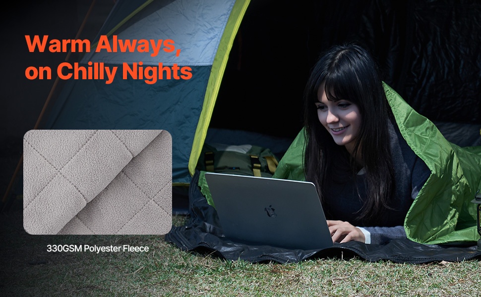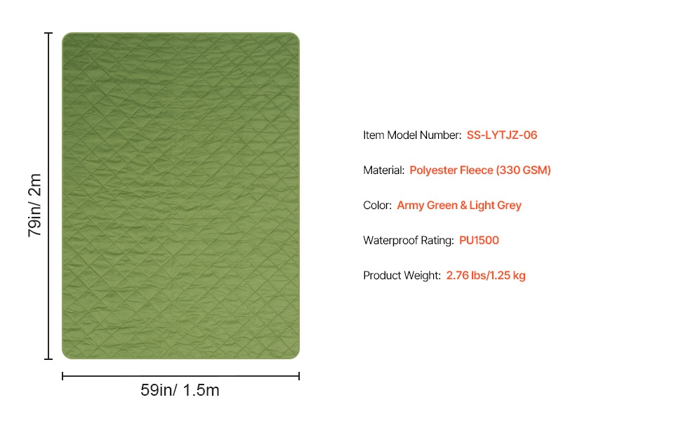 - Koko: 64" x 88" / 1.62 m x 2.23 m – suuri koko retkeilyyn, telttailuun ja varahuovaksi kotiin