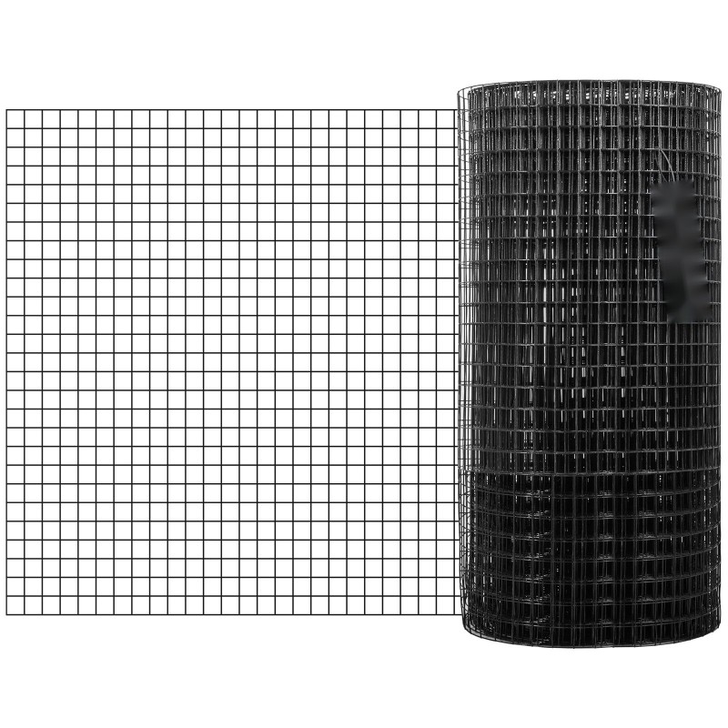 Galvanoidusta teräksestä valmistettu ja mustalla vinyylillä pinnoitettu hitsattu teräsverkko sopii hyvin puutarha-aitoihin, eläinaitauksiin ja suojarakenteisiin. Kestävä rakenne yhdistettynä 1" x 1" -silmäkokoon auttaa pitämään pienet eläimet poissa ja suojaa satoa sekä lemmikkejä. Mukana toimitettavat pihdit ja kangaskäsineet helpottavat verkon käsittelyä ja muokkaamista haluttuun kokoon.