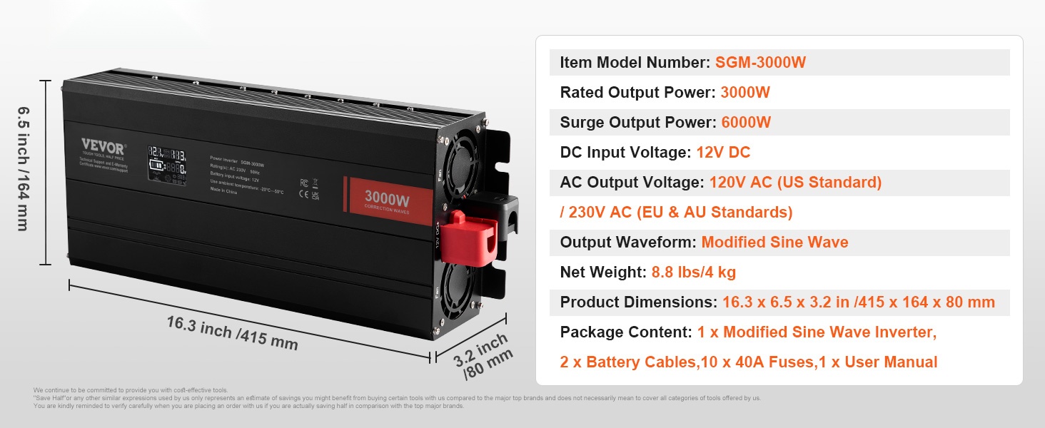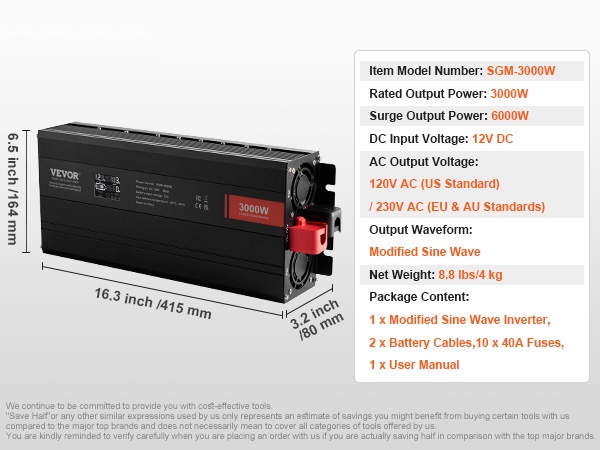 - Nimellisteho: 3000W, hetkellinen huipputeho: 6000W