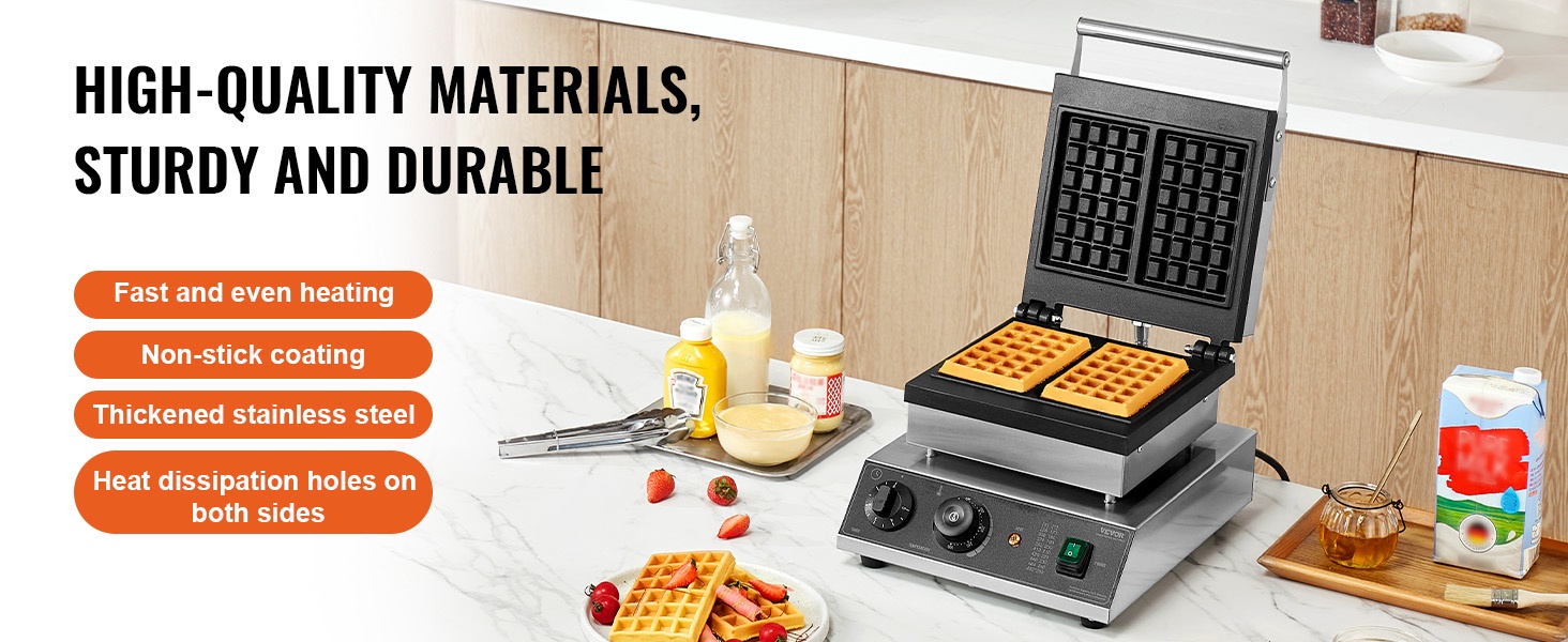 Vohvelirauta 4-paikkainen ruostumaton teräs 1750W ajastin lämpötilansäätö ammattikeittiöihin