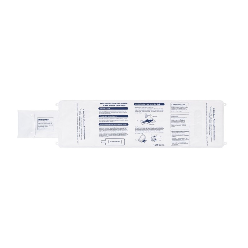Tämä varhaishälytys vuoteen hälytysjärjestelmä sisältää 10 x 35-tuumaisen (254 x 889 mm) vuoteen anturityynyn, kutsupainikkeen ja hakulaitteen. Järjestelmä seuraa luotettavasti iäkkäiden ja potilaiden liikkumista ja antaa hoitajalle ajoissa hälytyksen, mikä auttaa pienentämään kaatumisriskiä.